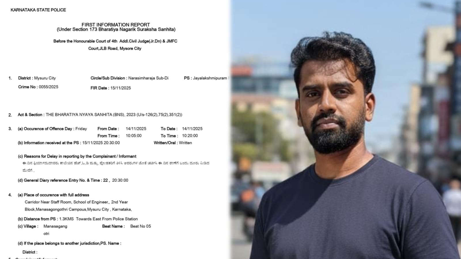 Mysore: An FIR has been registered at the Jayalakshmipuram police station after a female student made a serious allegation of sexual harassment against Bharat Bhargava, a lecturer of a prestigious engineering college in Mysore.