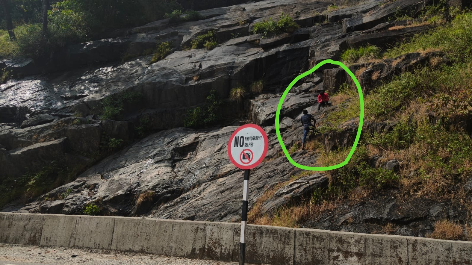 Even in winter, the water flow in Charmadi Falls is high and the moss covered rocks are very slippery. At the edge of such dangerous places, tourists risk their lives for photos and reels.