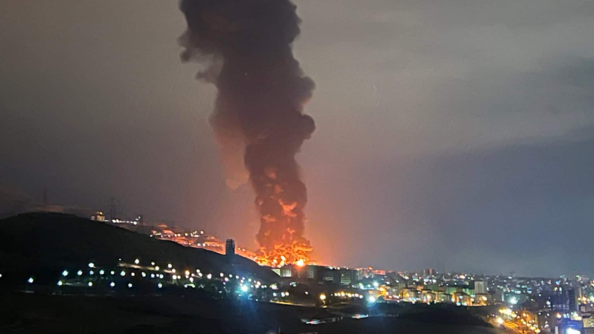farce The news agency quoted a source in Iran’s Oil Ministry as saying that Israel attacked 3 oil depots in western Tehran. The attacks were carried out in the Kuhak and Shahran areas of the capital and the nearby city of Karaj, the report said. This is the first time that Israel has targeted an oil depot. After the attack, clouds of smoke were seen rising at many places in the capital Tehran.