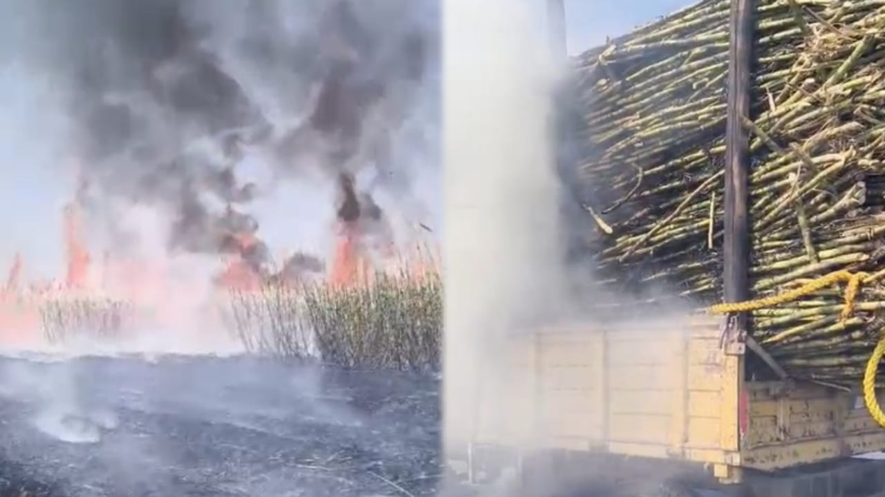 Farmer Bhimu Kembavi’s 5 acres of sugarcane crop and a tractor-trailer full of sugarcane were completely gutted. While preparing to send the harvested sugarcane to the factory, the mishap took place due to a technical fault in the power line passing over the farm.