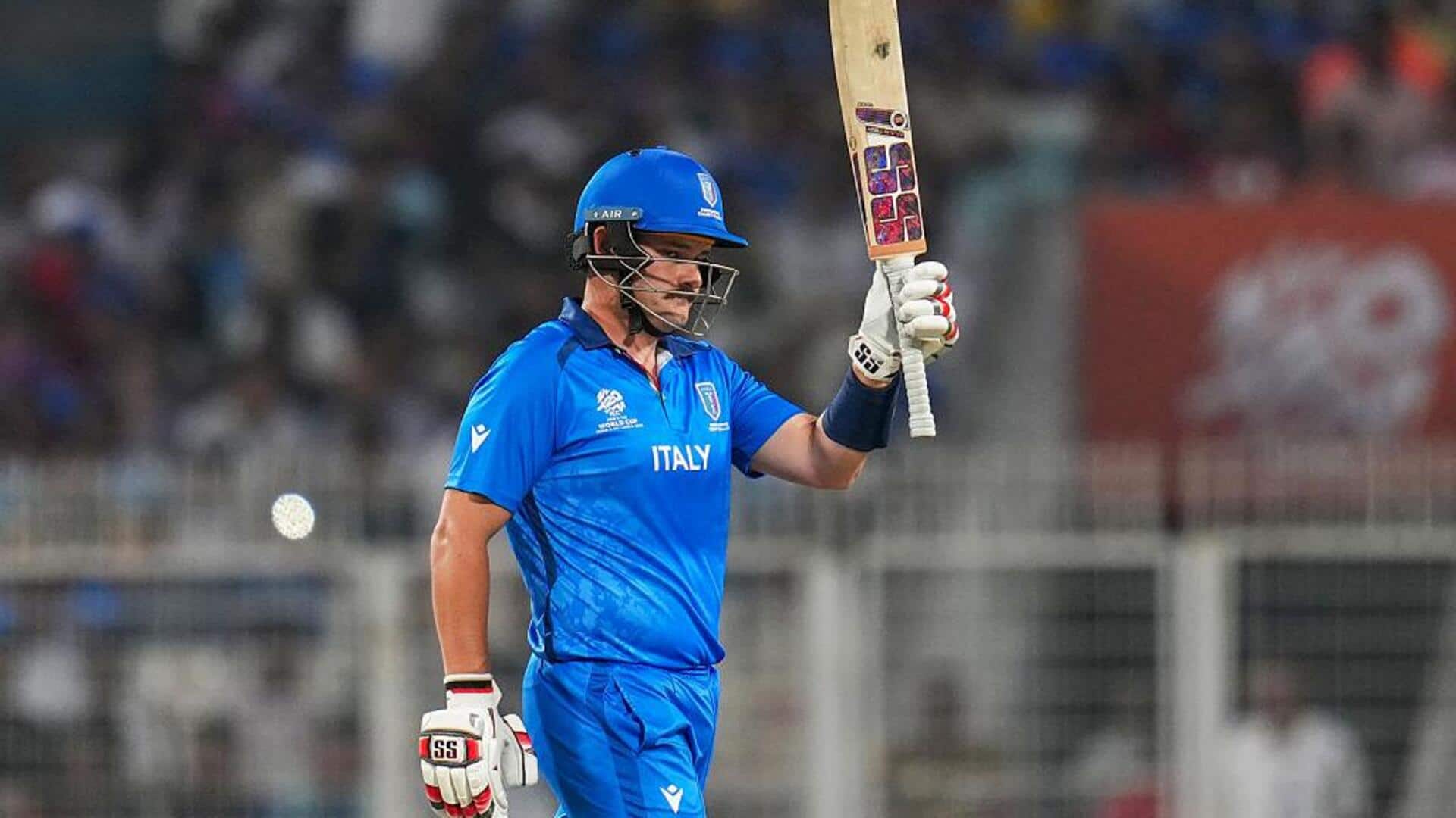 Chasing the target, when Italy lost its third wicket at the score of 22 runs, Ben Manenti came to the crease. He took on the English bowlers fiercely and completed his half-century in just 22 balls. This right-handed batsman played a quick inning of 60 runs in 25 balls with a strike rate of 240.00. He hit 4 fours and 6 sixes in his half-century innings.